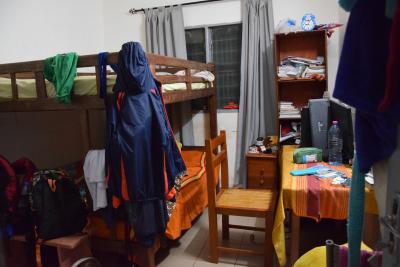 Wir sind mit die ersten, die zu zweit bei der kamerunischen Sandrine unterzukommen. Bis vor einem knappen Jahr, waren die drei Kinder so liebenswürdig ihr Zimmer mit Volunteers zu teilen. Diesmal, zu zweit, wäre das allrdings schwierig geworden. Doch da unsere Hostfamilie umgezogen ist, gibt es ein freies Zimmer für uns beide. Zusammen mit einem Cousin, der aktuell für längere Zeit auch hier wohnt, leben wir also zu acht in der neuen 3-Zimmer Wohnung.